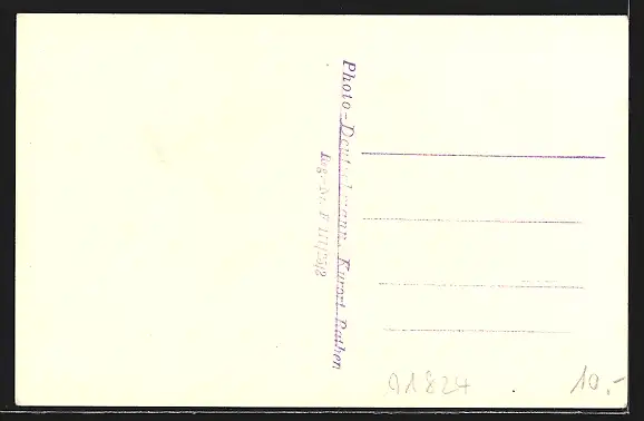 Personenbezogene Daten auf der Rückseite der Karte wurden durch blauen Textmarker unkenntlich gemacht. Die blauen Stellen sind auf die Vorderseite durchgeweicht und wirken sich negativ auf das Postkartenfoto aus