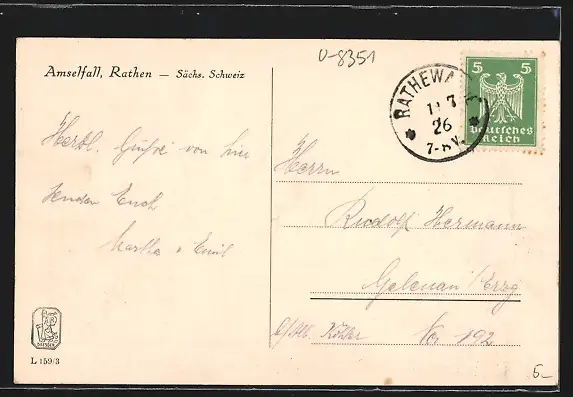 alte Ansichtskarte, gelaufen 1926, guter Zustand