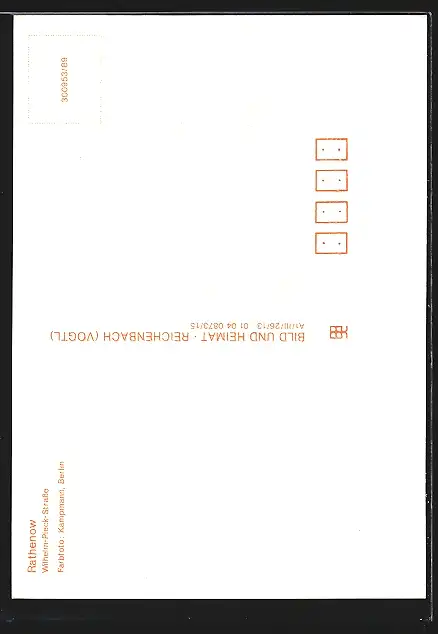 Personenbezogene Daten auf der Rückseite der Karte wurden durch blauen Textmarker unkenntlich gemacht. Die blauen Stellen sind auf die Vorderseite durchgeweicht und wirken sich negativ auf das Postkartenfoto aus