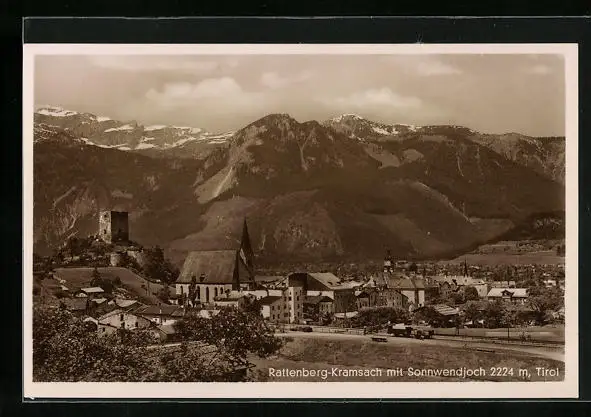 AK Rattenberg-Kramsach, Teilansicht mit Kirche und Sonnwendjoch