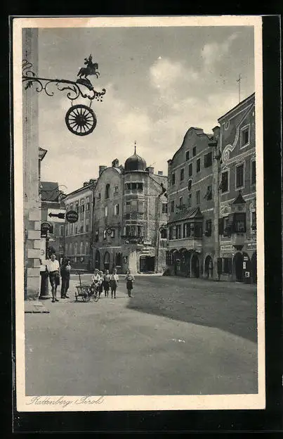AK Rattenberg, Strassenpartie mit Gasthausschild
