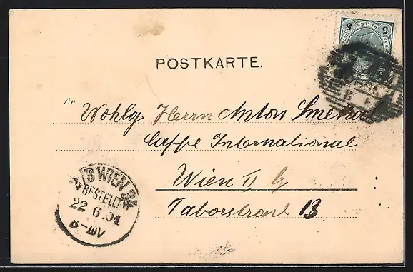 alte Ansichtskarte, gelaufen 1901, Stempelspur, guter Zustand