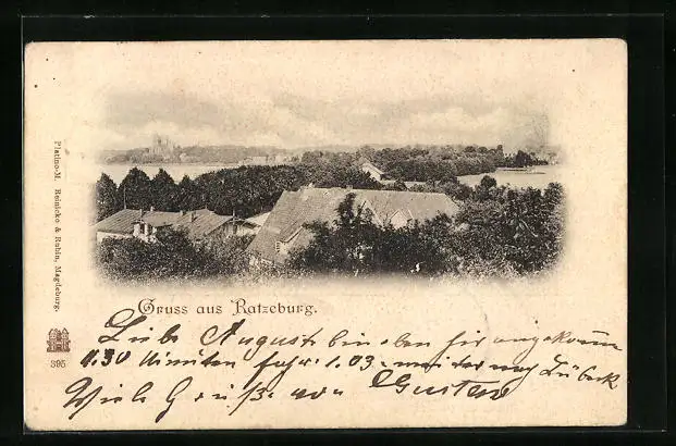 AK Ratzeburg, Blick über die Dächer der Häuser