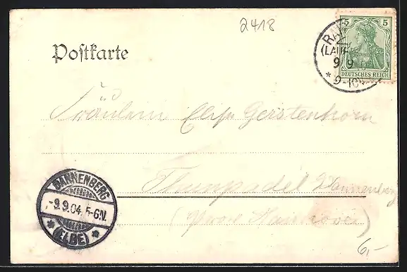 alte Ansichtskarte, gelaufen 1904, Stempelspur, guter Zustand