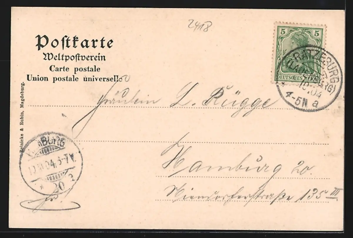 alte Ansichtskarte, gelaufen 1904, guter Zustand
