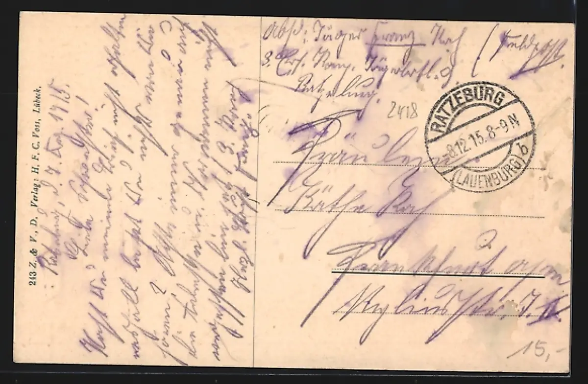 alte Ansichtskarte, gelaufen 1915, Eckknick unten rechts, guter Zustand