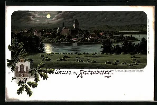 AK Ratzeburg, Totalansicht bei Mondschein in pech schwarzer Nacht