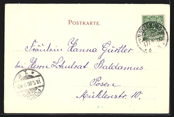 alte Ansichtskarte, gelaufen 1900, guter Zustand