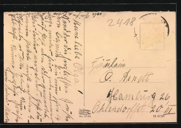 alte Ansichtskarte, gelaufen, Briefmarke entfernt, guter Zustand