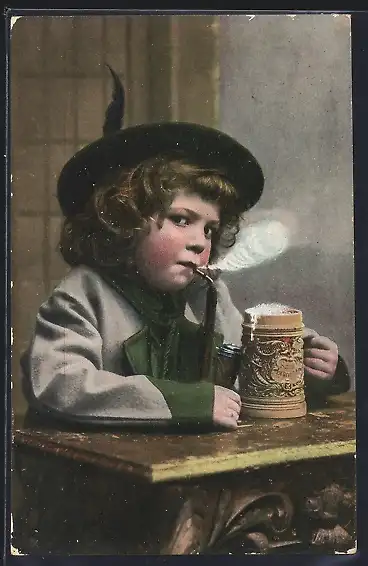 AK Rauchender Junge mit Bierkrug