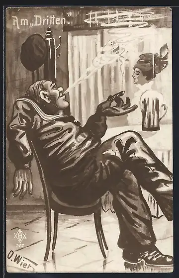AK Rauchender Mann gemütlich im Stuhl sitzend, Bierkrug, Frau