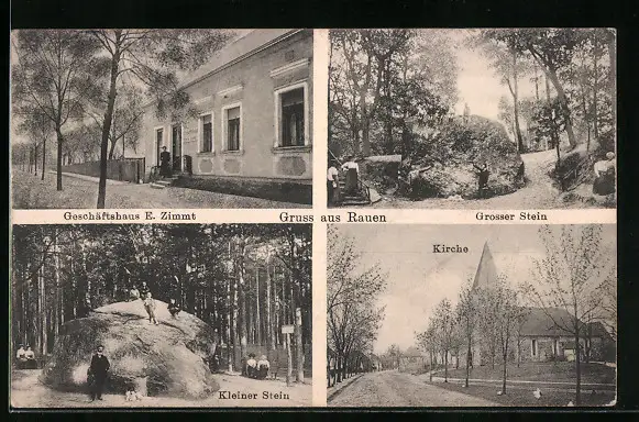 AK Rauen, Geschäftshaus E. Zimmt, Kirche, Grosser Stein