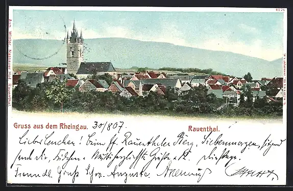 AK Rauenthal /Rheingau, Ort mit Kirche