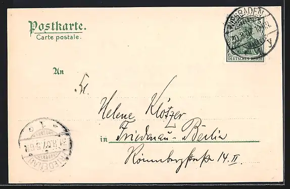alte Ansichtskarte, gelaufen 1907, Stempelspur, guter Zustand