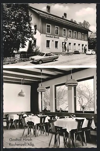 AK Rauhenzell / Allgäu, Gasthof Hirsch, Aussen- und Innenansicht