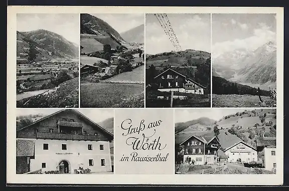 AK Rauris, Wörth aus der Vogelschau, Ortspartie und Strassenpartie