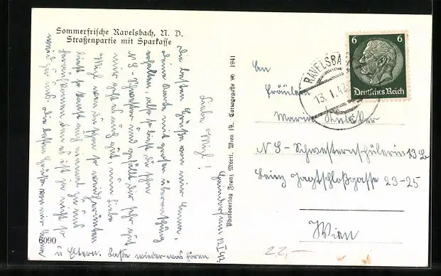 AK Ravelsbach /N.-D., Strassenpartie mit Sparkasse