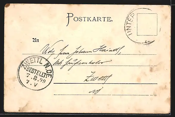 alte Ansichtskarte, gelaufen 1899, Briefmarke entfernt, guter Zustand