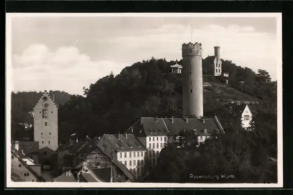 AK Ravensburg, Blick auf Burg und Wohnhäuser