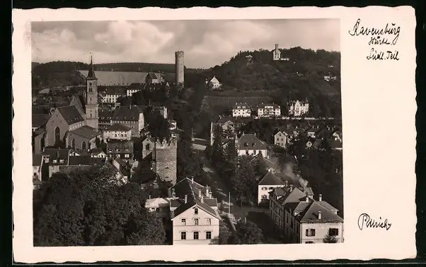 AK Ravensburg, Ortsansicht aus der Vogelschau