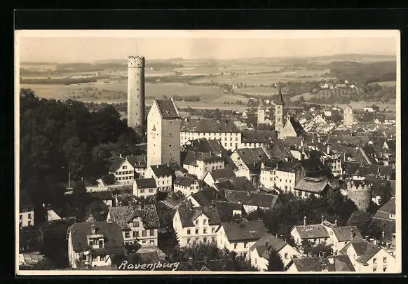 AK Ravensburg, Ortsansicht aus der Vogelschau