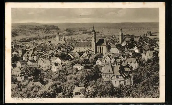 AK Ravensburg, Ortsansicht mit Kirche