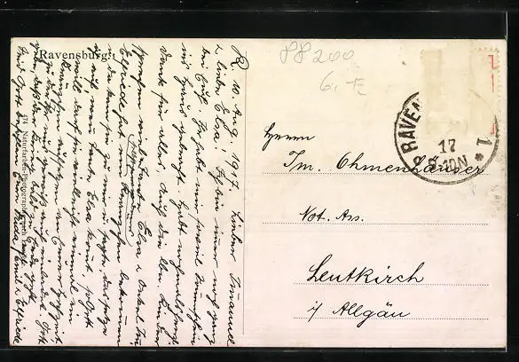 AK Ravensburg, Ortsansicht mit Kirchen