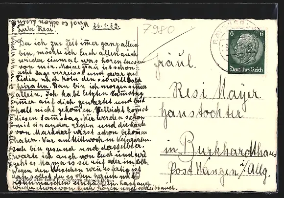 gelaufen 1939, Eckknick unten re., guter Zustand