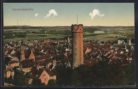 AK Ravensburg / Württ., Ortsansicht mit Turm