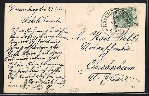 alte Ansichtskarte, gelaufen 1911, guter Zustand