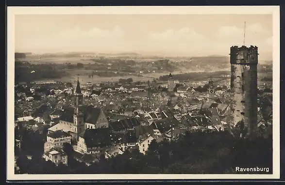 AK Ravensburg / Württ., Teilansicht mit Turm