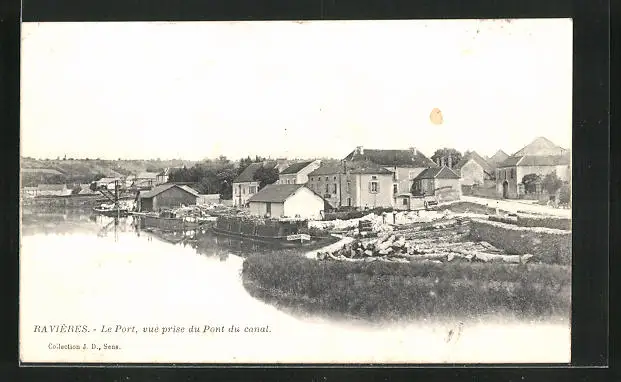 AK Ravieres, Le Port, vue prise du Pont du canal