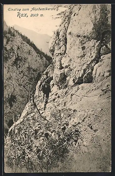 AK Rax, Bergsteiger beim Einstieg zum Akademikersteig