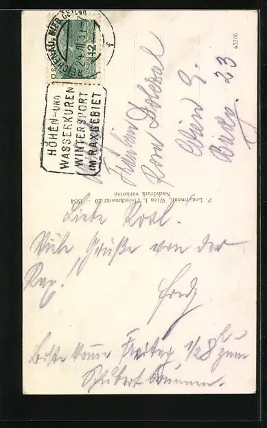 Personenbezogene Daten auf der Rückseite der Karte wurden durch blauen Textmarker unkenntlich gemacht. Die blauen Stellen sind auf die Vorderseite durchgeweicht und wirken sich negativ auf das Postkartenfoto aus