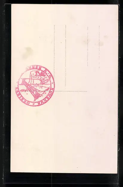 Personenbezogene Daten auf der Rückseite der Karte wurden durch blauen Textmarker unkenntlich gemacht. Die blauen Stellen sind auf die Vorderseite durchgeweicht und wirken sich negativ auf das Postkartenfoto aus
