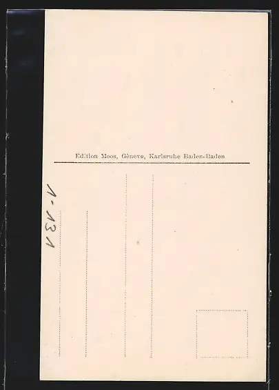 Personenbezogene Daten auf der Rückseite der Karte wurden durch blauen Textmarker unkenntlich gemacht. Die blauen Stellen sind auf die Vorderseite durchgeweicht und wirken sich negativ auf das Postkartenfoto aus