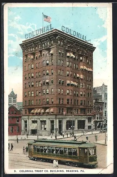 AK Reading, PA, Colonial Trust Co. Building, Strassenbahn