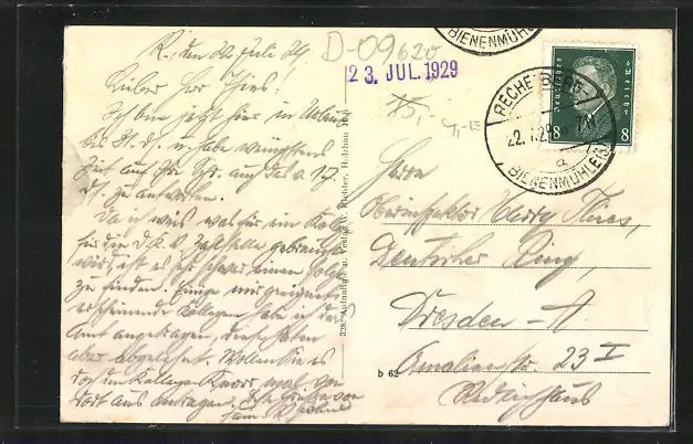alte Ansichtskarte, gelaufen 1929, guter Zustand