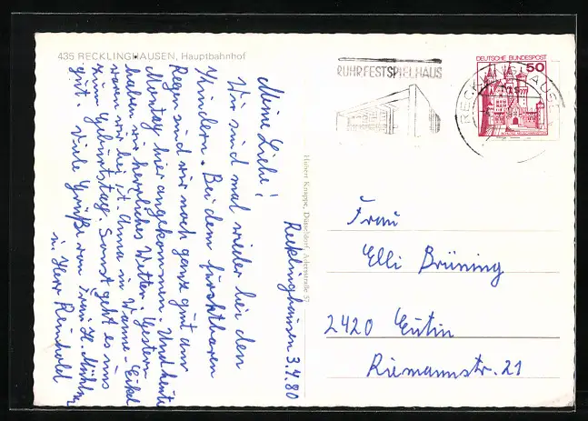 alte Ansichtskarte, gelaufen 1980, Bugspur unten li., Stempelspur, guter Zustand