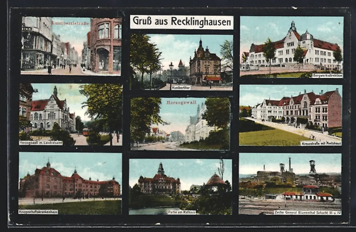 AK Recklinghausen, Kunibertistrasse, Herzogswall, Bergwerksdirektion