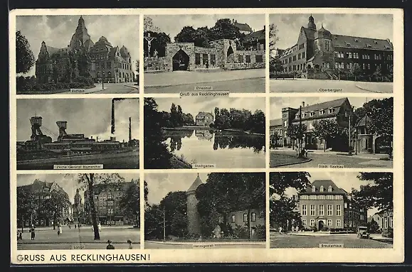 AK Recklinghausen, Zeche General Blumenthal, Stadtgarten, Rathaus