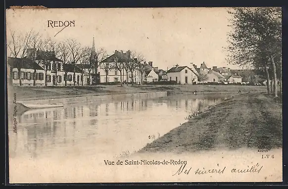 AK Redon, Vue de Saint-Nicolas-de-Redon et rivière