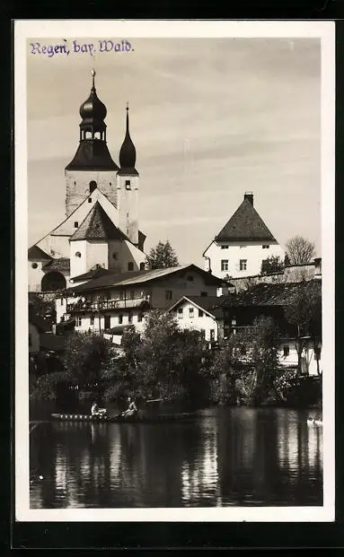 AK Regen im Bayr. Wald, Uferpartie mit Ortsansicht