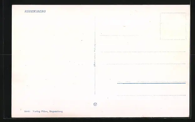 Personenbezogene Daten auf der Rückseite der Karte wurden durch blauen Textmarker unkenntlich gemacht. Die blauen Stellen sind auf die Vorderseite durchgeweicht und wirken sich negativ auf das Postkartenfoto aus