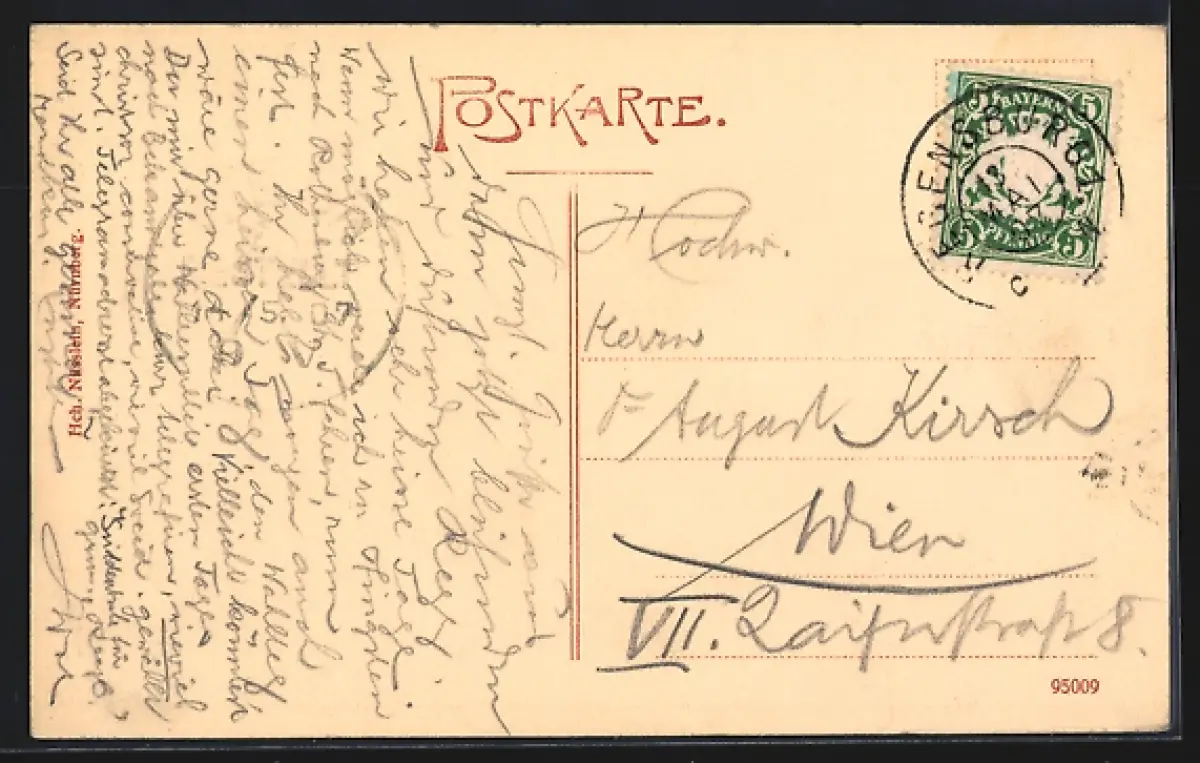 gelaufen 1907, Eckknick oben li., guter Zustand