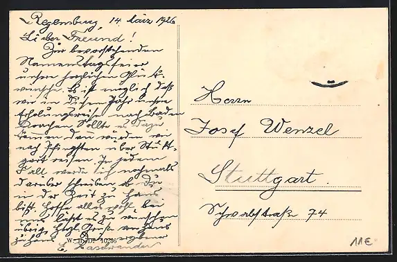 alte Ansichtskarte, gelaufen, Briefmarke entfernt, rückseitig Oberflächenschaden, guter Zustand
