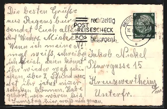 alte Ansichtskarte, gelaufen 1940, guter Zustand