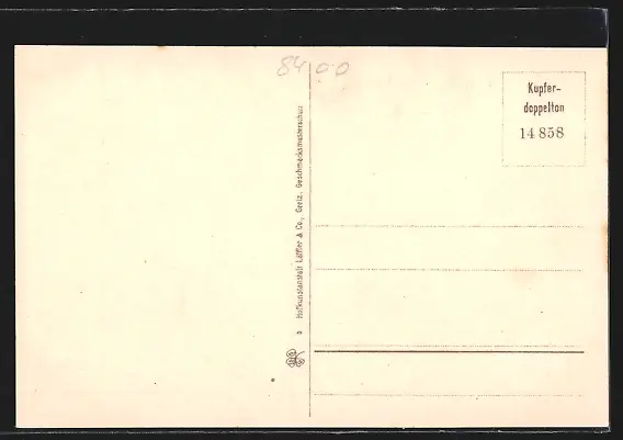 Personenbezogene Daten auf der Rückseite der Karte wurden durch blauen Textmarker unkenntlich gemacht. Die blauen Stellen sind auf die Vorderseite durchgeweicht und wirken sich negativ auf das Postkartenfoto aus