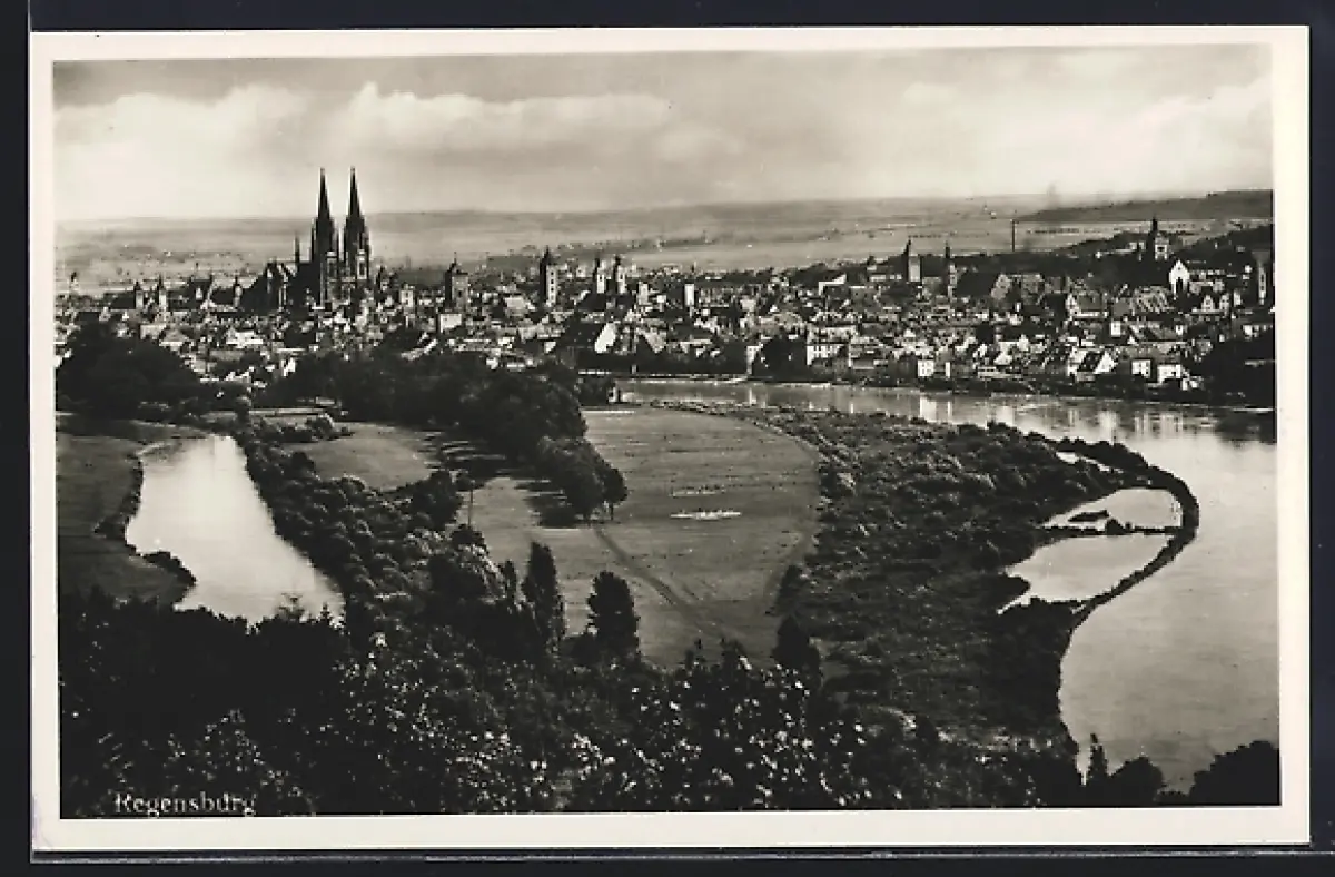 AK Regensburg, Totalansicht mit Flusspartie