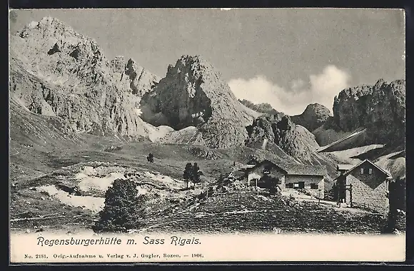 AK Regensburgerhütte, Berghütte mit Sass Rigais